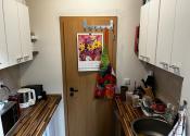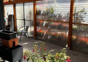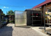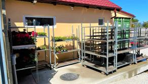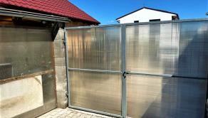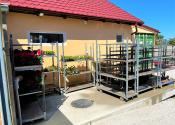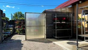 Hlavný vstup do predajne je uzatvárateľny praktickou elektrickou bránou . Priestor v podbrání slúži ako výloha pre kvety a rôzne doplnky.