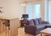 V obývacej izbe je pohodlná rozkladacia sedačka, nábytok a pracovný kútik. Samozrejmosťou je aj moderný televízor, vďaka ktorému si vychutnáte filmové večery v maximálnom komforte.