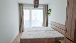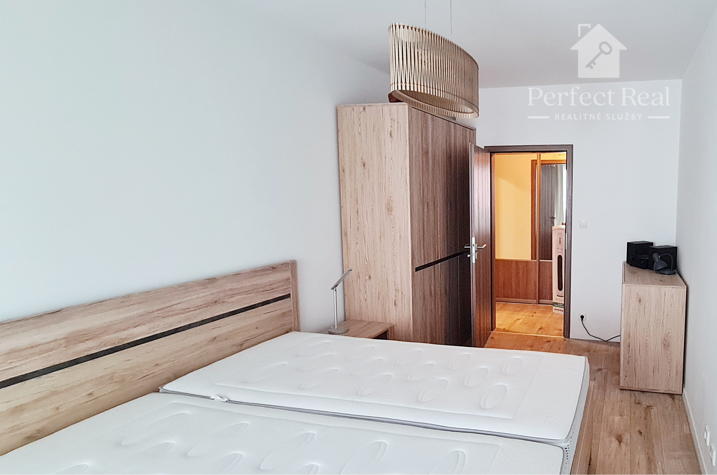 Je kompletne zariadený kvalitným nábytkom. Spálňa disponuje manželskou postelou s kvalitnými matracmi pre pohodlný spánok a nábytkom, ktorý ponúka dostatok úložného priestoru.