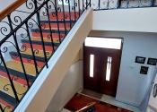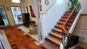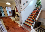 Krásnym, priestranným schodiskom s kovaným zábradlím vstupujete na poschodie s tromi izbami a vstupom na terasu nad garážou. Táto terasa /33 m2/ je napojená na súvislí balkón lemujúci prednú časť poschodia so samostatným prístupom aj z dvoch susediacich izieb.
