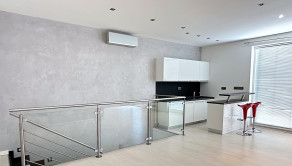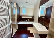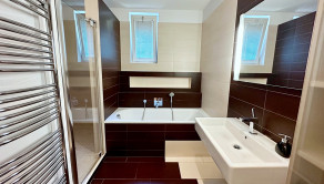 Mezonet ponúka komfortné pohodlné bývanie, je funkčne a moderne spracovaný, nechýba bodové osvetlenie na oboch podlažiach. Spotrebiče /indukčná varná doska, elektrická rúra, umývačka riadu/ sú kvalitné zn. Gorenje. V spálni je veľmi dobre vymyslený prechodný šatník. V celom byte sú plastové okná s vnútornými žalúziami, bezpečnostné vstupné dvere. Na hornom poschodí sú osadené veľkoformátové plastové okná, cez ktoré je vstup na osvetlenú priestrannú terasu. V kúpeľni a každom WC je malé okno. Klimatizácia na hornom podlaží je skvelým riešením v horúcich letných dňoch. Vykurovanie zabezpečuje samostatný plynový kotol.