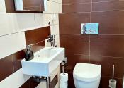 Na prízemí nás privíta vstupná chodba, kuchyňa s jedálenským kútom, spálňa s priechodným šatníkom, izba, priestranná kúpeľňa s vaňou aj sprchovým kútom, samostatné wc a komora na potraviny, kde je umiestnený plynový kotol. Izby sú samostatné, z ktorých je vstup na spoločný balkón.
