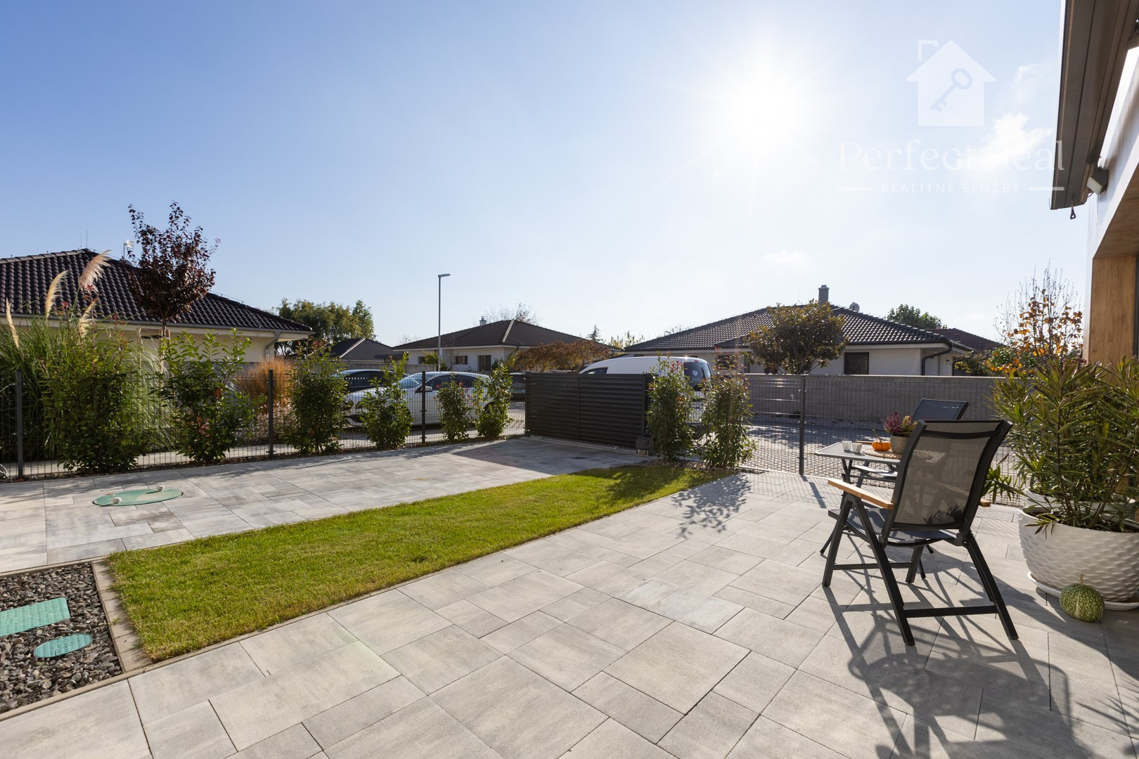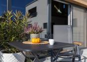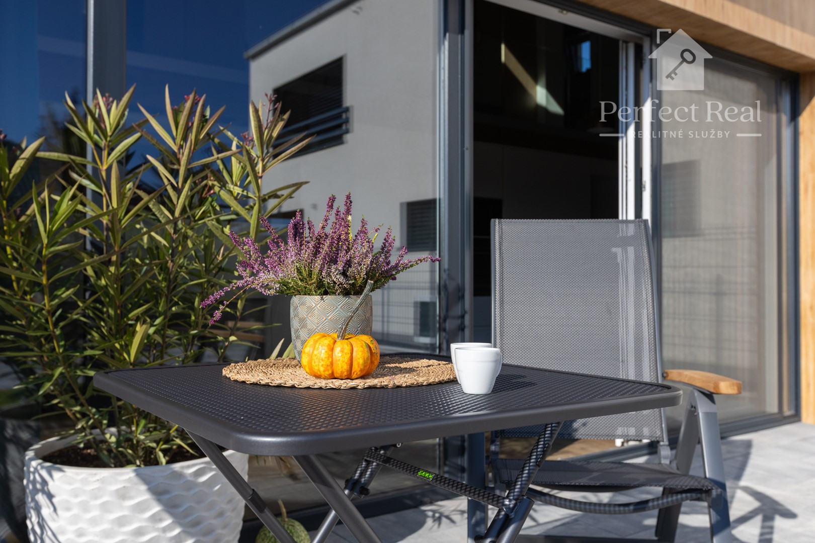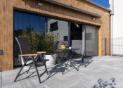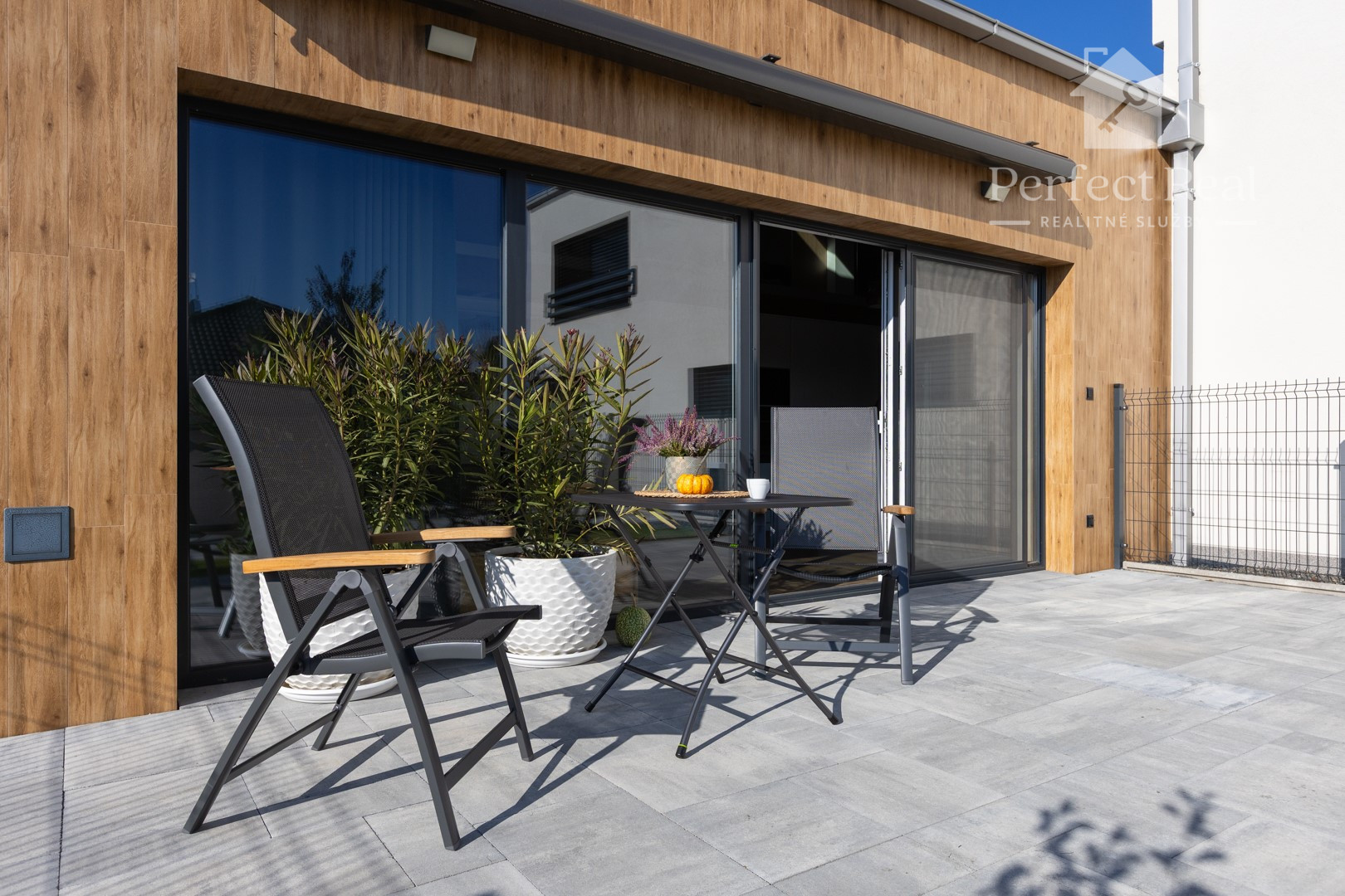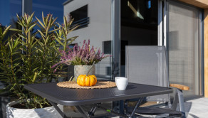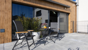 Z obývačky a kuchyne prejdete priamo na slnečnú terasu, kde si vychutnáte rannú kávu s výhľadom na ulicu.