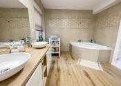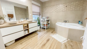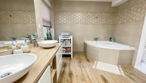 veľká kúpeľňa s rohovou vaňou, samostatné WC