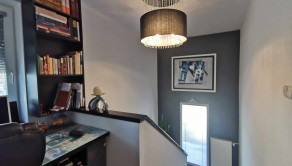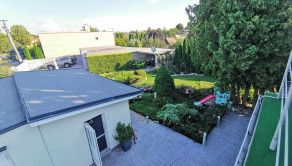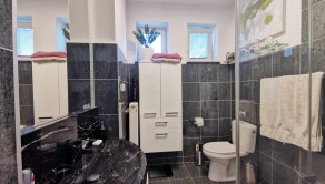 Okrem svojej nadštandardnej dispozície je tento rodinný dom ideálny aj pre dve generácie. Má dva samostatné vchody a na poschodí je predpríprava na kuchyňu (momentálne spĺňa funkciu šatníka), čo umožňuje nezávislosť a súkromie. V dome nájdete veľkú obývaciu izbu (na prízemí s krbom), útulnú spálňu a kúpeľňu na oboch podlažiach. Praktické úložné priestory v podobe vstavaných skríň, komôr a veľkej pivnice sú samozrejmosťou. Z horného podlažia sa dostanete na rozľahlú terasu s úchvatným výhľadom na záhradu.