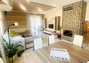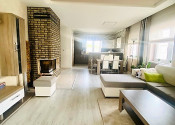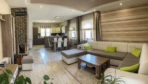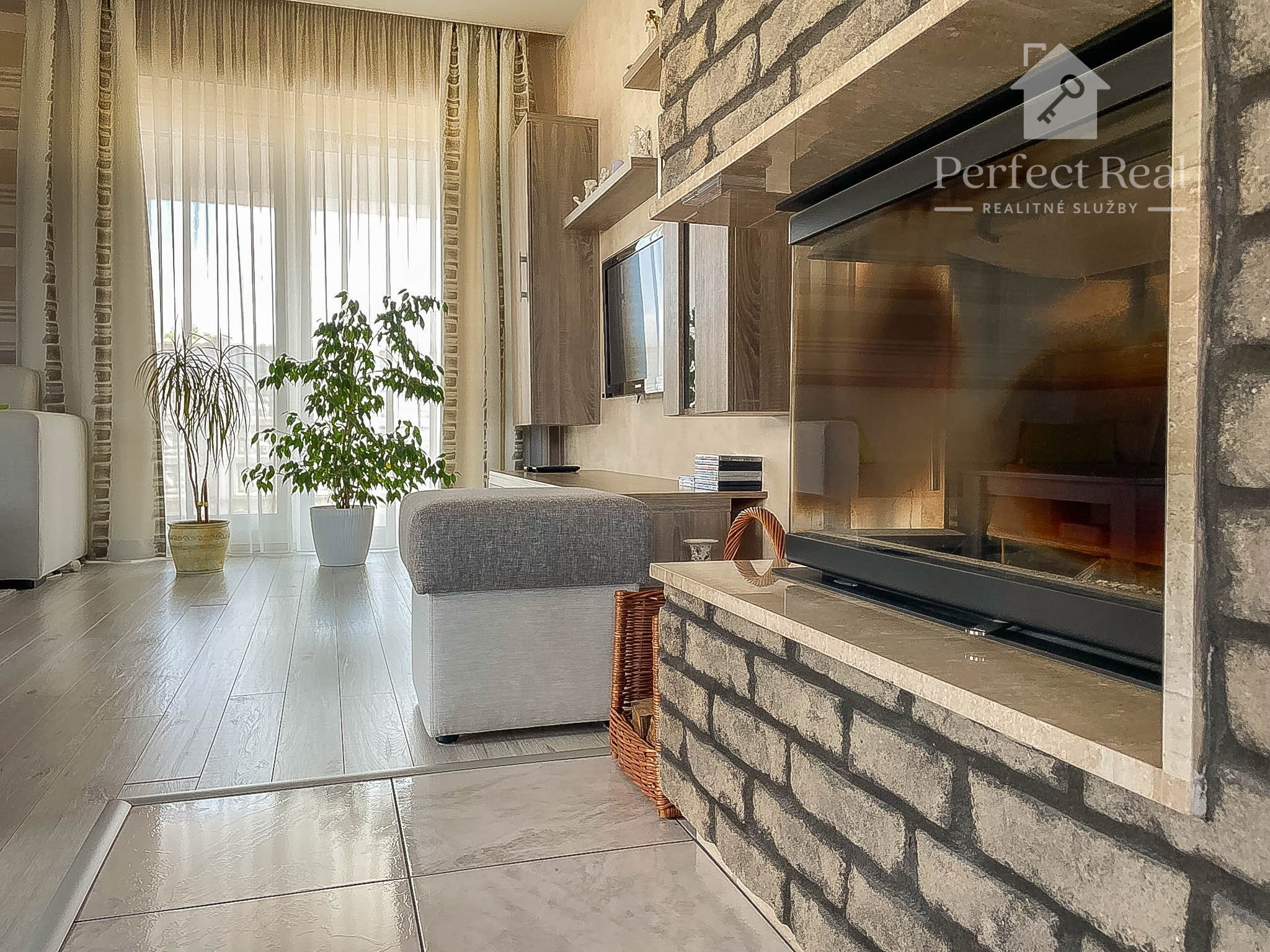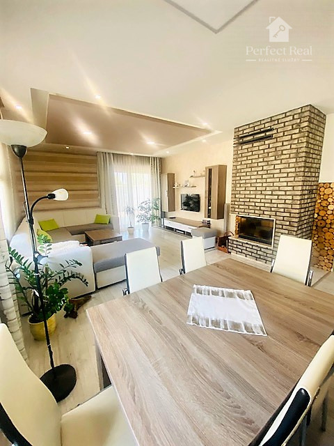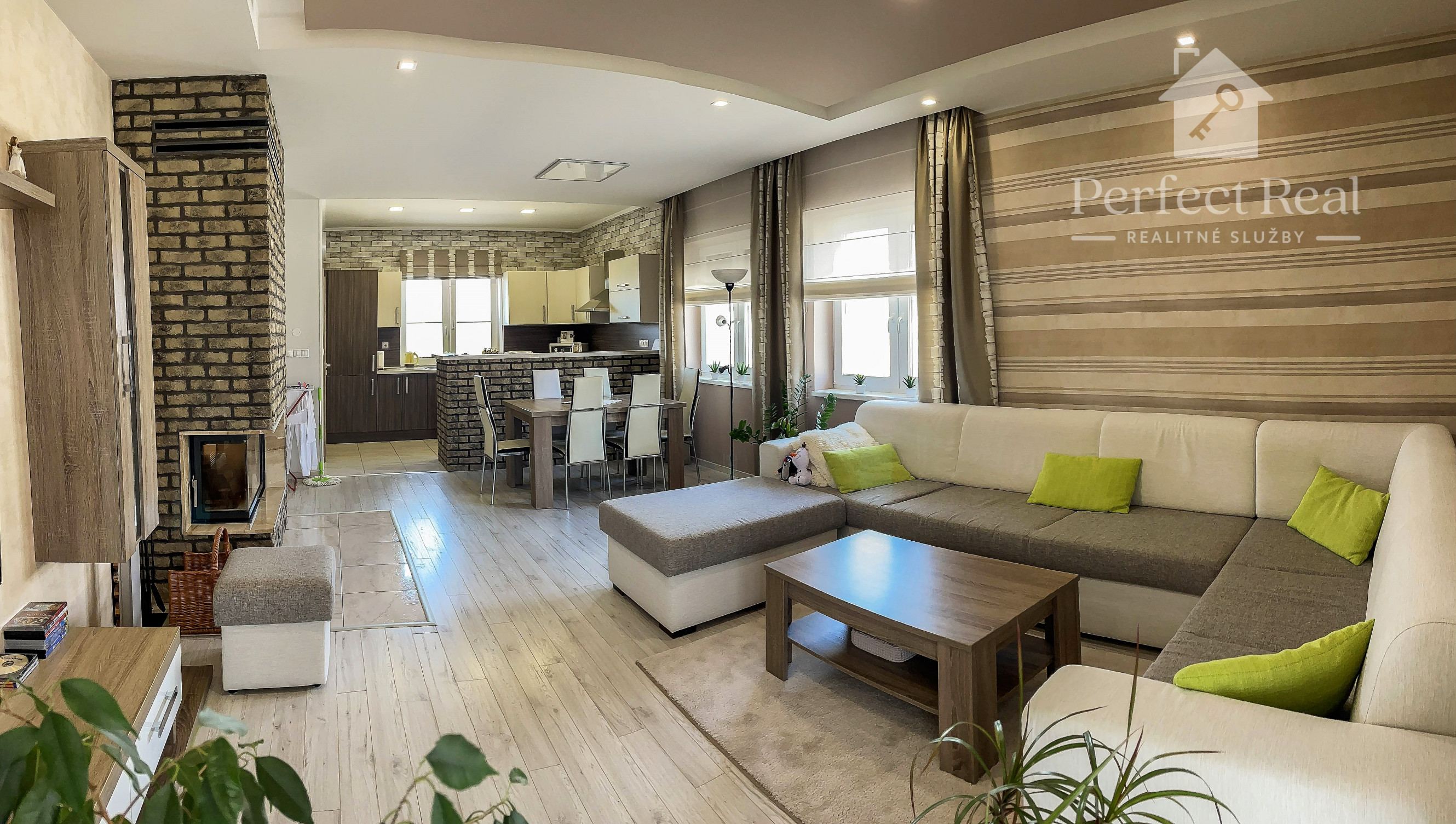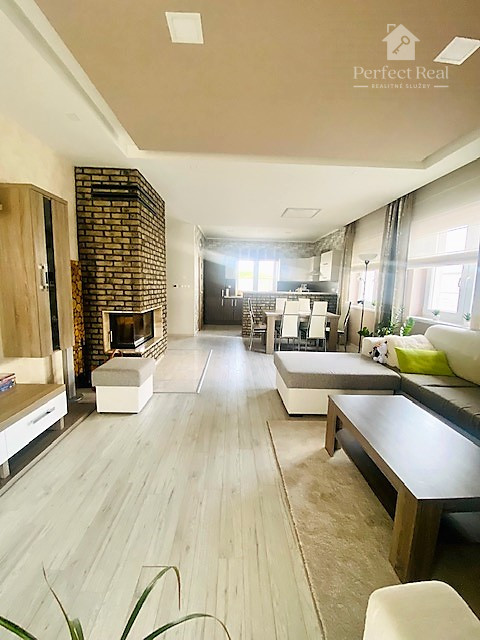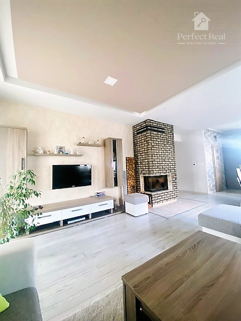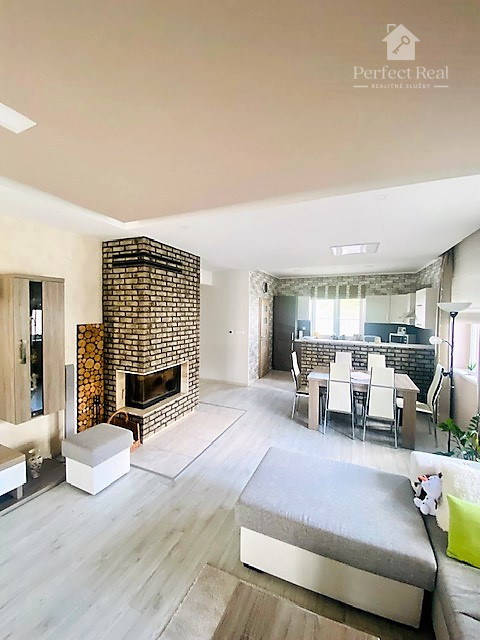 - priestranná obývacia izba s krbom a s výstupom na terasu