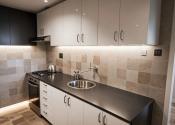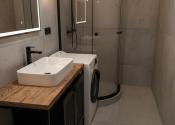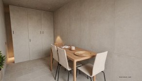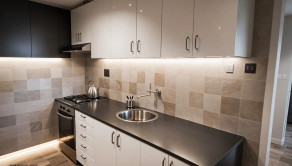 Pozostáva z dvoch miestností, samostatnej kuchyne, kúpeľne so sprchovým kútom, samostatným wc a skladového priestoru.