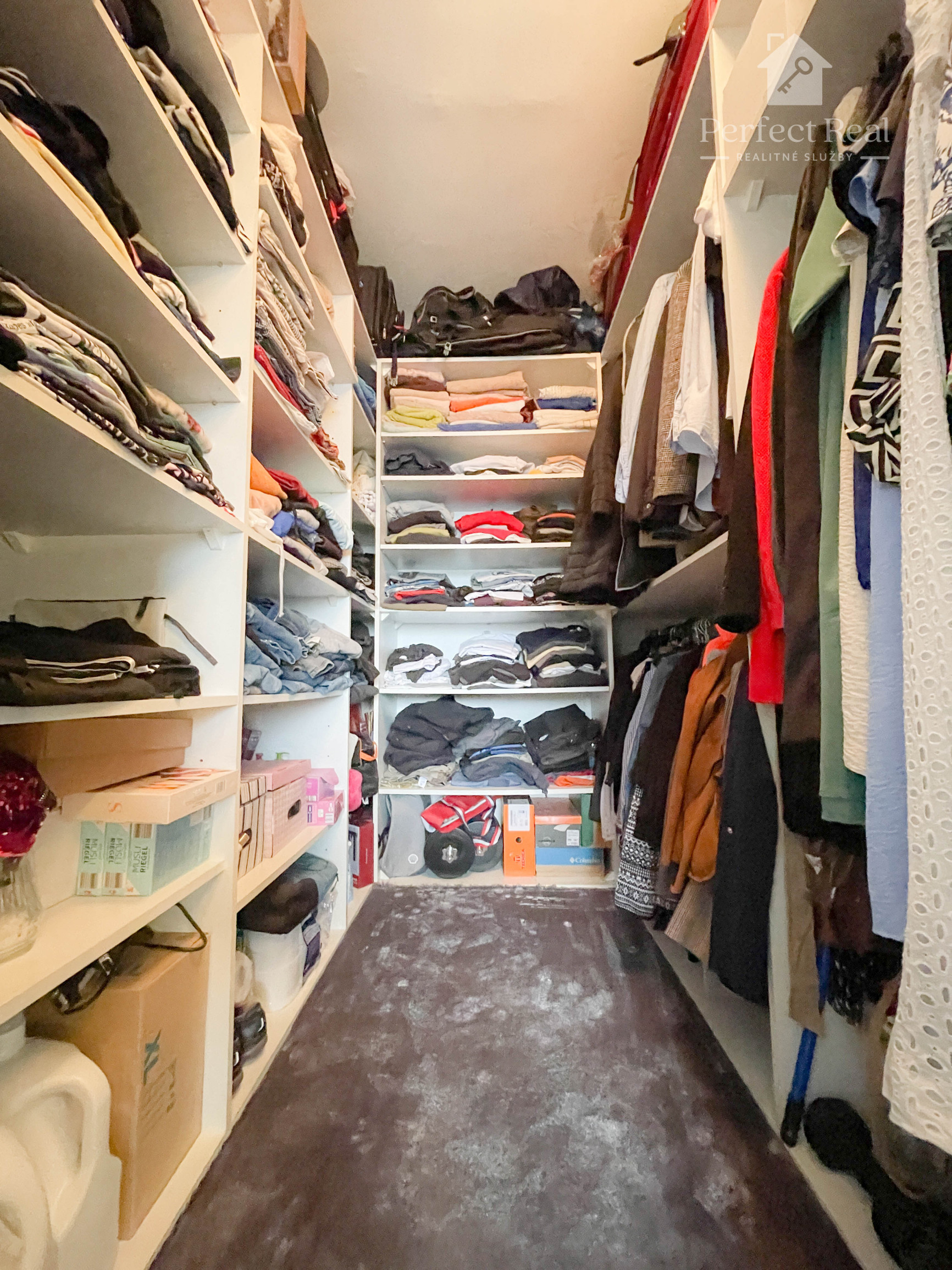 Dispozícia bytu je veľmi dobrá, izby sú nepriechodné a každá má dostatok priestoru. Dispozičné riešenie: priestranná chodba ( vstavaná skriňa) s klimatizáciou, kúpeľňa( vaňa),zvlášť WC, detská izba s výstupom na balkón, spáľňa so šatníkom, veľká obývacia izba, kuchyňa so špajzkou.