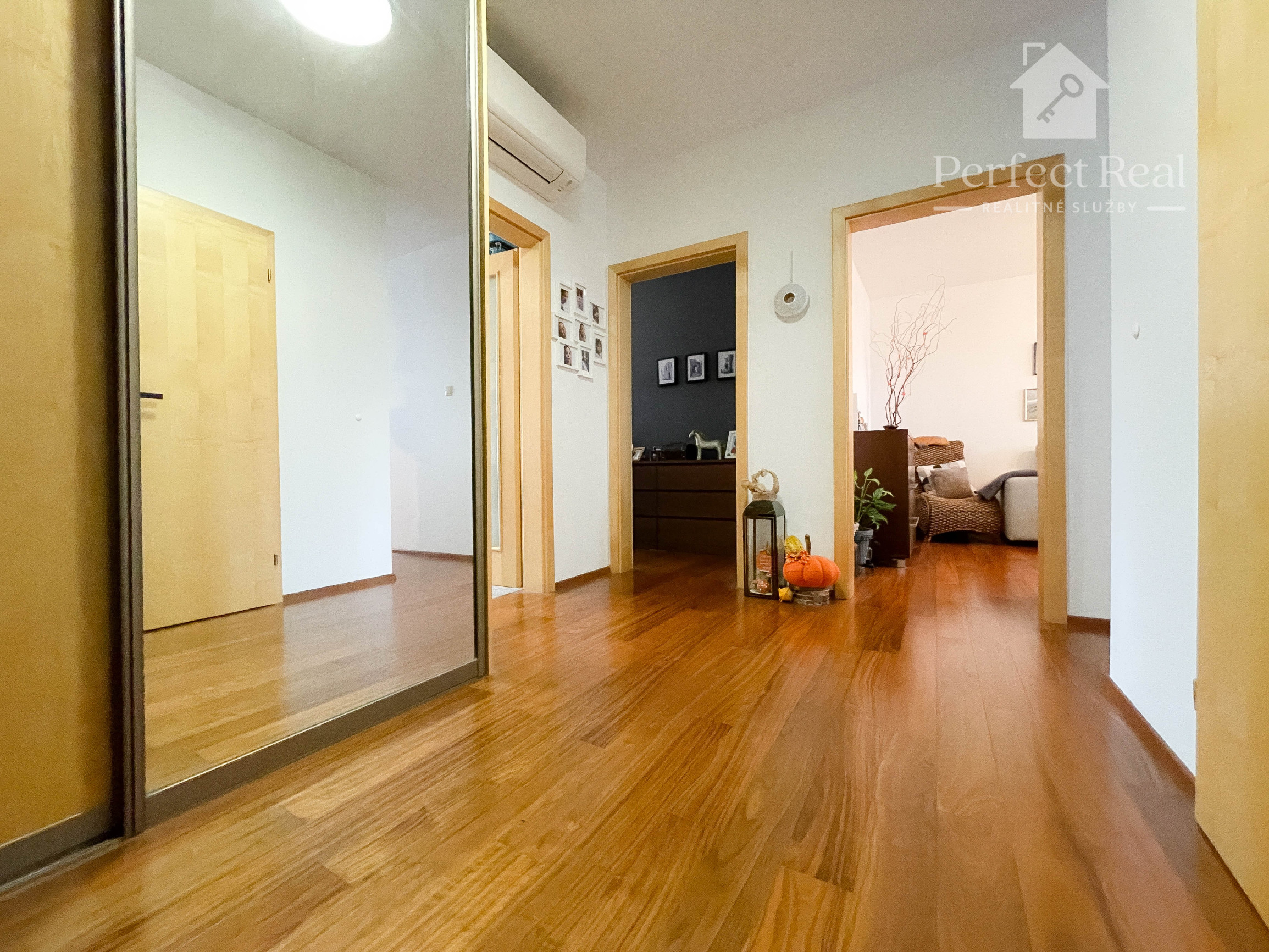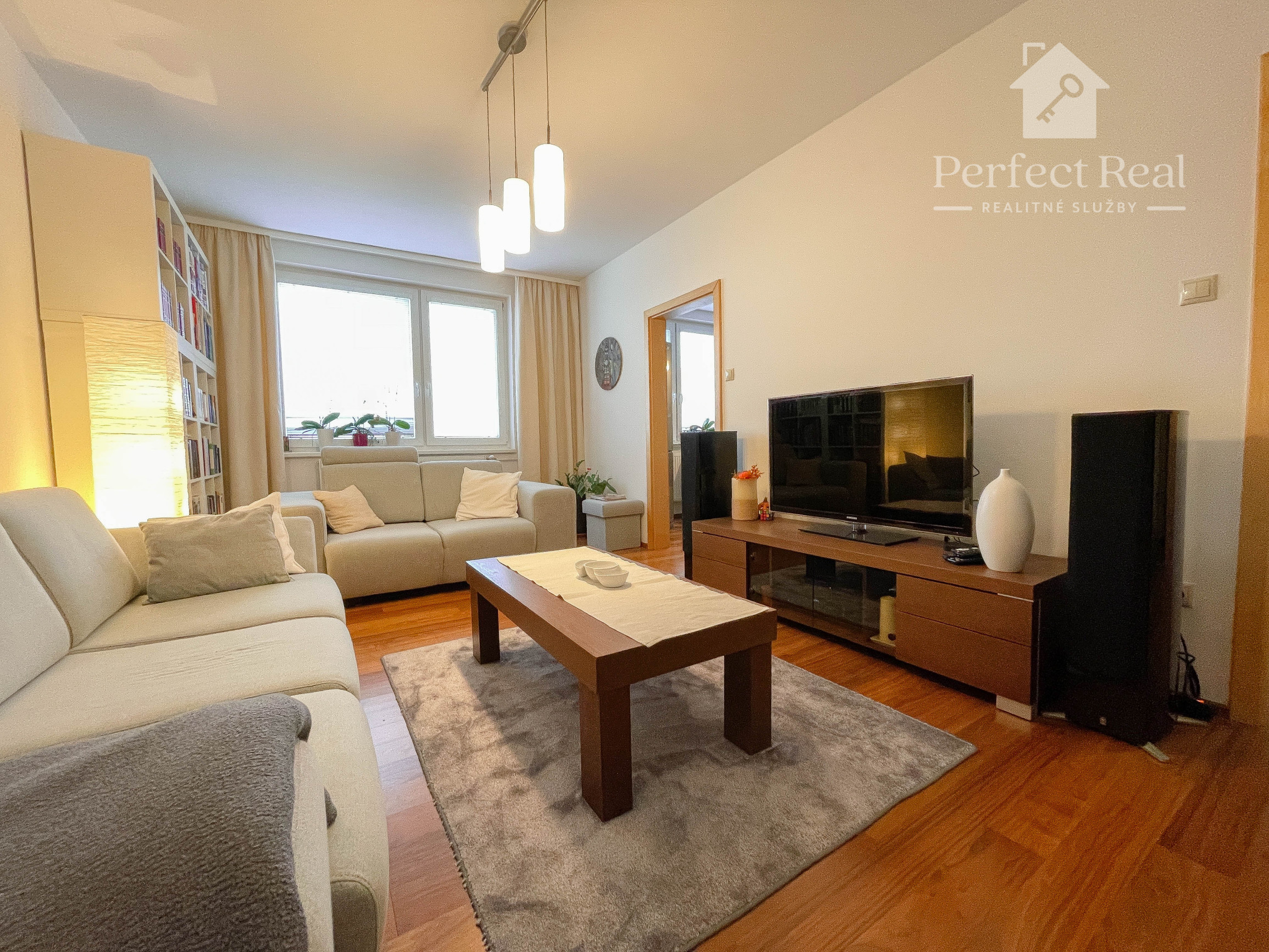 Byt je svetlý a vzdušný, vo veľmi dobrom a udržiavanom stave. V roku 2006 prešiel byt kompletnou rekonštrukciou: elektrické vedenie, kvalitné drevené parkety, ktoré dodávajú priestoru príjemnú atmosféru,bezpečnostné vstupné dvere, kuchynská linka so vstavanými spotrebičmi, vstavaná skriňa na chodbe, interiérové dvere, vybudovaný šatník. Klimatizácia Daikin bola montovaná v roku 2023. K bytu prislúcha aj murovaná pivnica v suteréne vo výmere 5m2.
