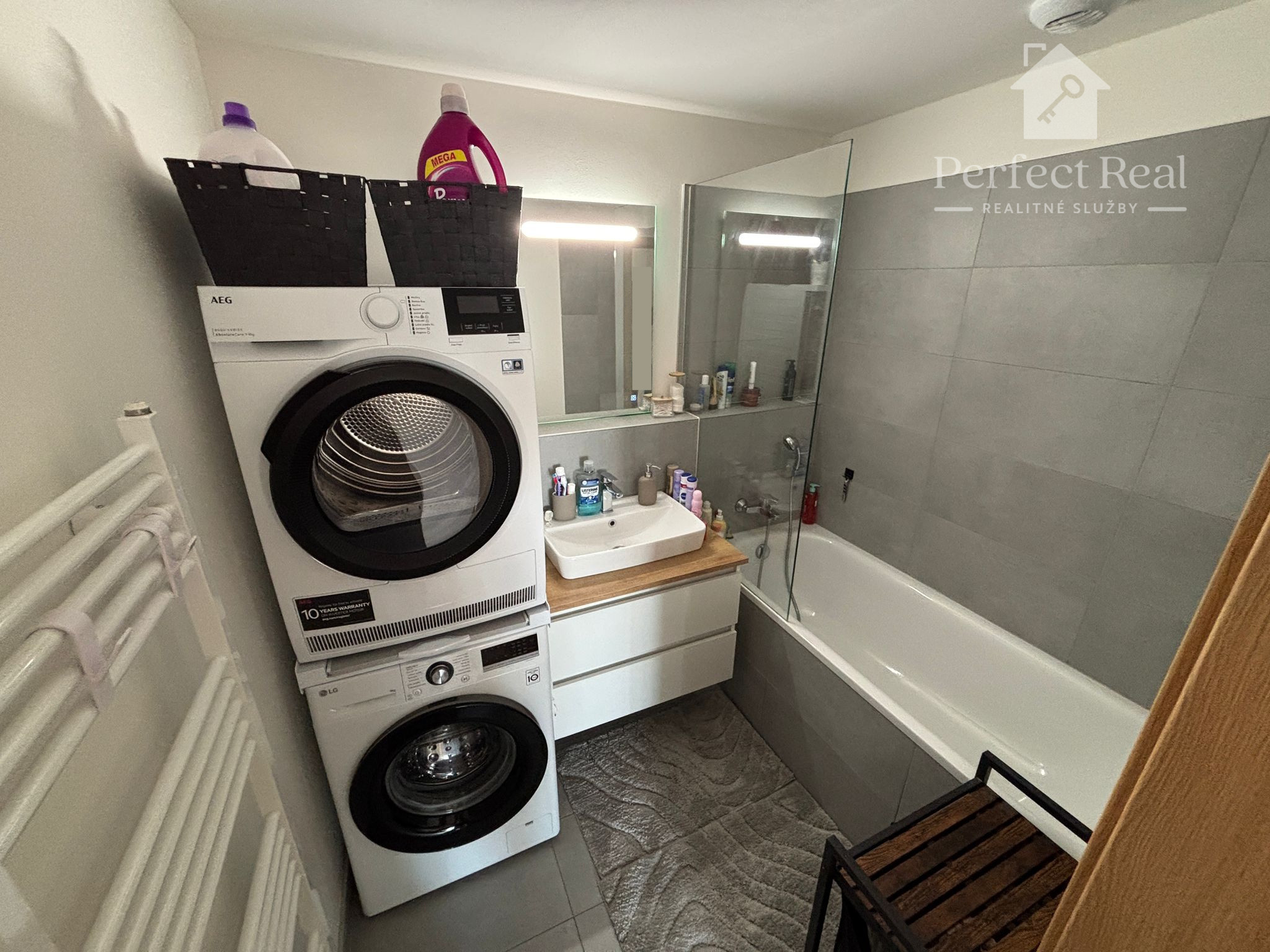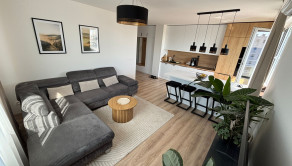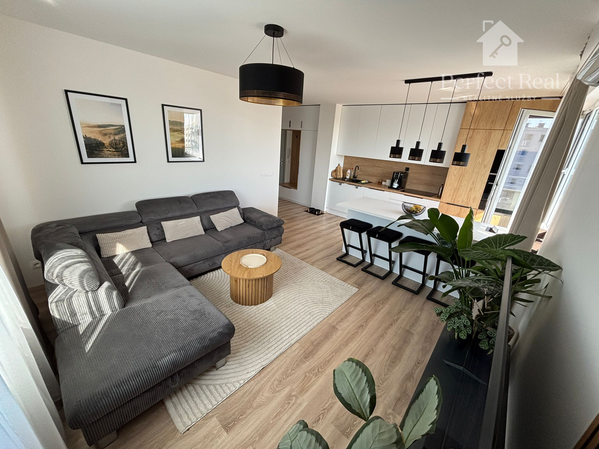 Byt je plne zariadený moderným nábytkom. Pozostáva z priestrannej obývačky, samostatnej spálne s veľkou roldor šatníkovou skriňou a tretej izby využiteľnej ako pracovňa, detská alebo hosťovská izba. Súčasťou je klimatizácia, moderná kuchyňa so zabudovanými spotrebičmi, balkón a pivničná kobka. V cene energií je zahrnutý internet a TV. Byt je pripravený na okamžité nasťahovanie.