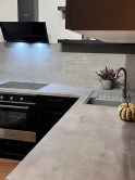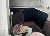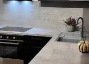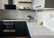 Kuchynská linka bola robená na mieru v šedo-čiernej kombinácii pôsobí moderne a prakticky.