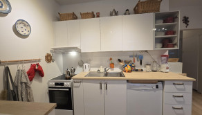 Príjemný domček má nasledovnú dispozíciu: vstupná chodba, priestranná obývacia izba s jedálenskou časťou a kuchynským kútom s vybavením, útulná spálňa, kúpeľňa so sprchovacím kútom a toaletou, povala. Z obývačky je vstup na terasu a do oplotenej záhrady. Parkovanie priamo pred domom na pozemku. Dom sa prenajíma zariadený.
