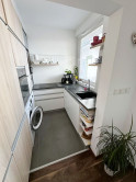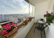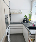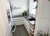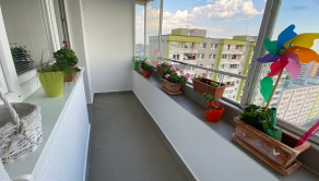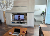 Byt je kompletne zrekonštruovaný, zariadený nábytkom na mieru. Pozostáva zo vstupnej chodby, menšej spálne, obývačky, z ktorej je vstup na balkón s krásnym výhľadom a komplet vybavenej kuchyne/chladnička, automatická pračka, varná doska, mikrovlnka, umývačka riadu. V byte bude namontovaná k prenájmu aj klimatizácia.