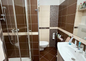 V kúpeľňi je sprchový kút, umývadlo a wc.