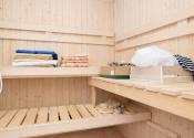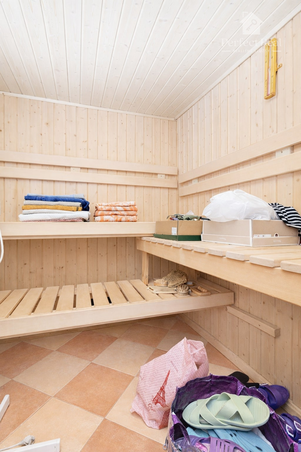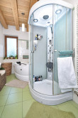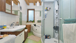 - kúpeľňa so sprchovacím kútom, vaňou a saunou