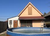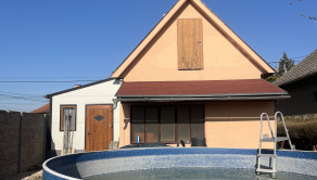 Dom je celkom podpivničený. k domu prislúcha aj garáž pre 2autá, malá kôlňa, altánok s kuchynský pultom, malý betónový bazén. a veľká záhrada.