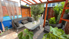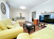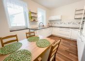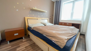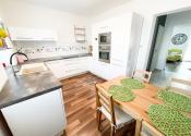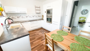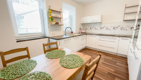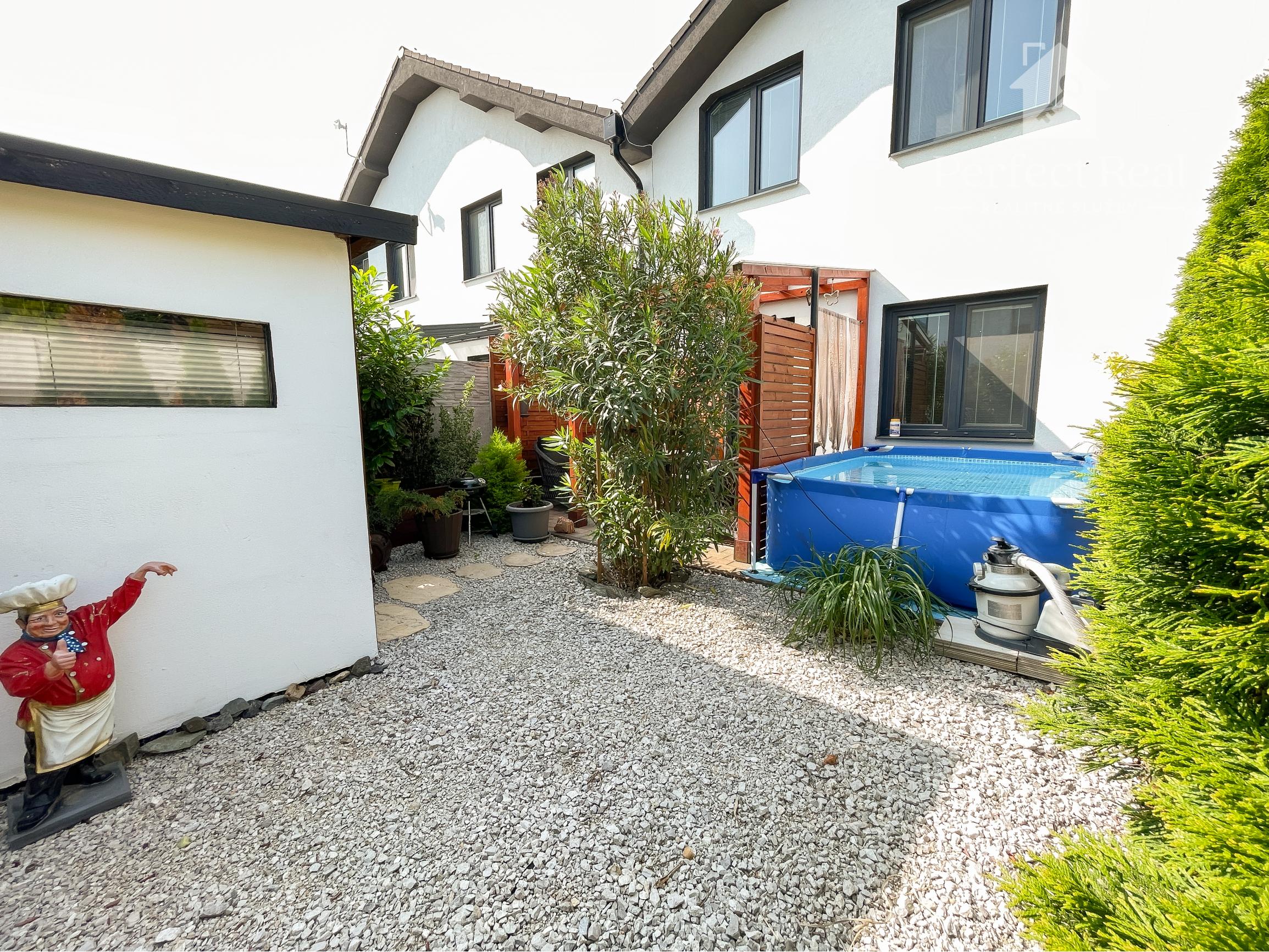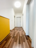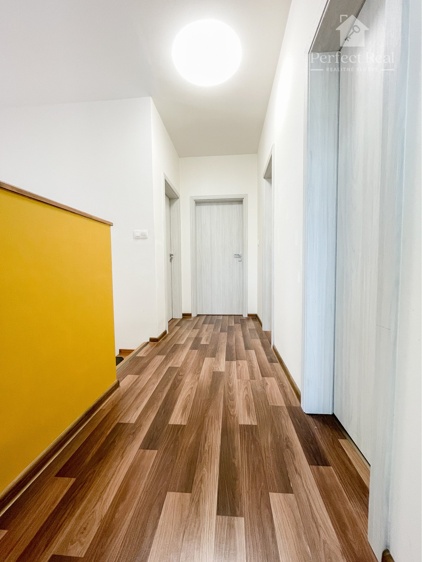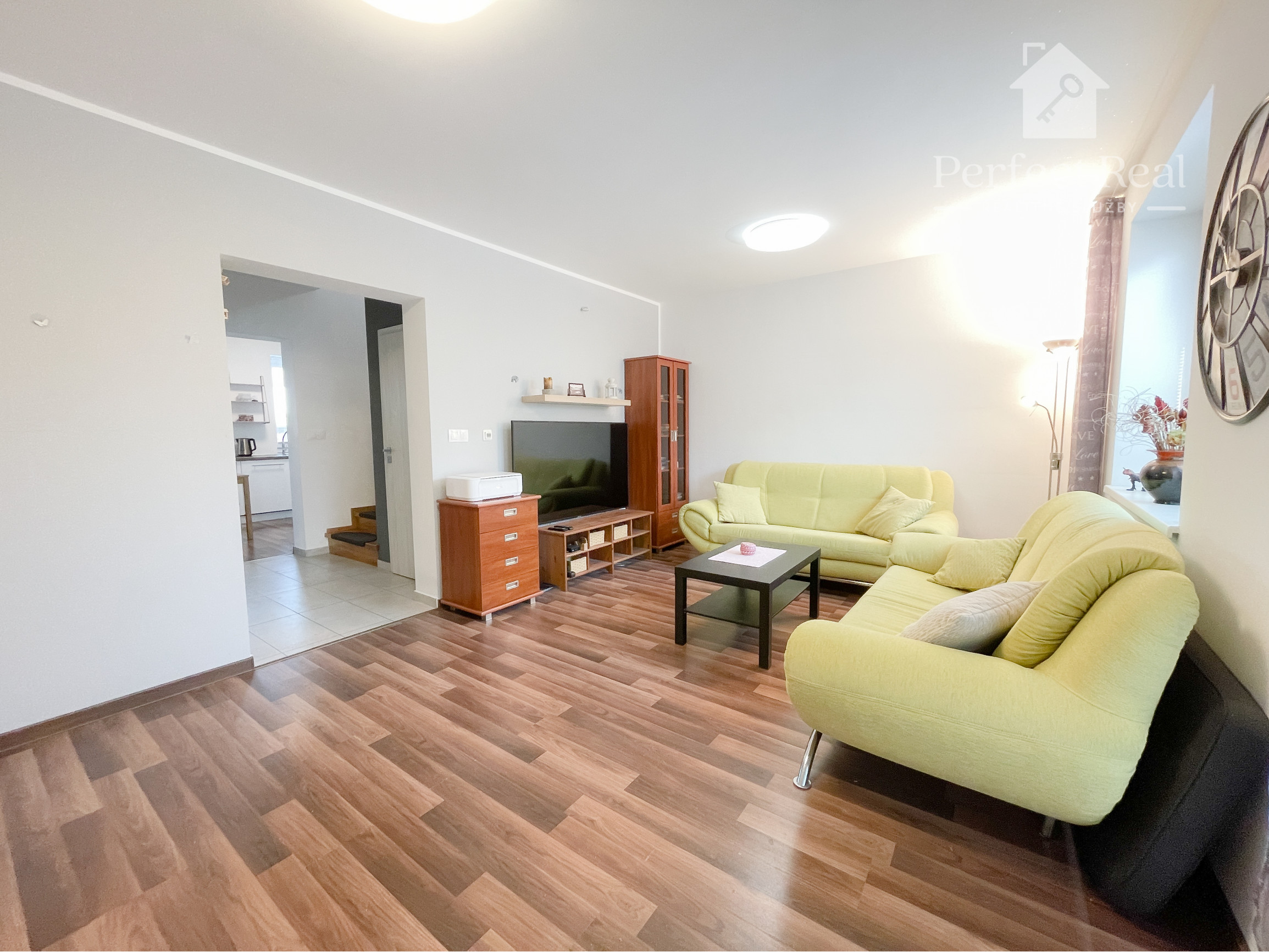 Exkluzívne Vám ponúkame na predaj 4 izbový mezonetový byt v obci Hviezdoslavov, na ulici Rumančekova. Byt bol skolaudovaný v roku 2019, má podlahovú plochu 91 m2, je súčasťou rodinného dvojdomu s 4 bytovými jednotkami. Má veľmi dobré dispozičné riešenie: zo zádveria je prístuo do WC, chodby so chodiskom a dennej časti bytu- kuchyne a obývacej izby. Z obývacej haly je východ na terasu a do záhrady. Cez schodisko sa prechádza na úroveň prvého poschodia, kde sa nachádza nočná časť bytu, a to tri izby, chodba, technická miestnosť a kúpeľňa. Záhrada má výmeru 51 m2, je krásna, upravená, na pozemku sa nachádza záhradný domček. Byt sa predáva čiastočne zariadený. Súkromie ponúka hliníková brána, ktorá umožňuje parkovanie vo dvore.