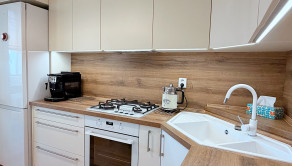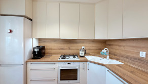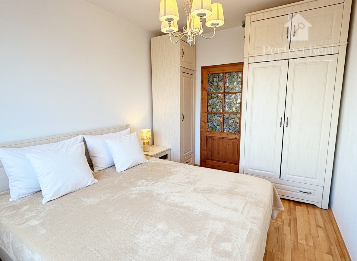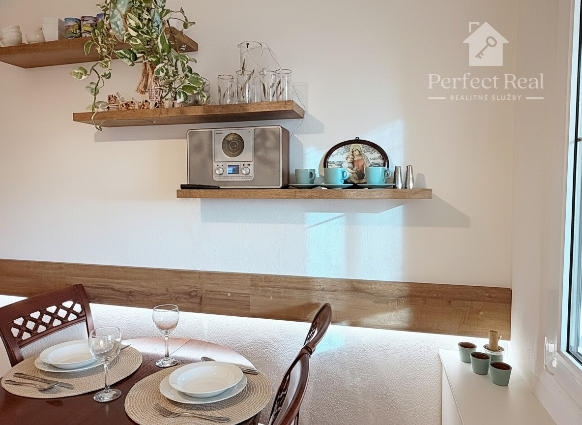 Byt prešiel kompletnou rekonštrukciou. Predáva sa kompletne zariadený nábytkom na mieru a so spotrebičmi – úložné vstavané skrine v predsieni, v obývacej miestnosti - rozkladacia pohovka, nábytková zostava, konferenčný stolík. Príjemnú atmsféru dopĺňa elektrický krb, ktorým je možnosť dokurovania. V kuchyni je veľmi pekná kuchynská linka vo farbe slonová kosť, vyrobená na mieru so skrinkami po strop a príjemným led osvetlením, s plynovou varnou doskou, rúra na pečenie, umývačka riadu, digestor, chladnička s mrazničkou, rozkladací jedálenský stôl so stoličkami až pre 6 ľudí. V spálni je manželská posteľ, nočné lampy, 2 šatníkové skrine, komoda, nočné stolíky.