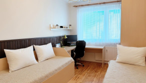 Pri vstupe do bytu nás privíta predsieň priestranná predsieň, samostatné wc, kúpeľňa s vaňou. Všetky tri izby a kuchyňa sú samostatné. Obývacia izba a kuchyňa sú orientované na na juhovýchod a dve spálne sú orientované na severozápad. Z kuchyne je výstup na zasklennú loggiu s pekným výhľadom.