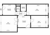 Celková výmera je 69,96m², z toho byt má cca 68,5m², pivnica cca 1,4m².