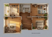 Pri vstupe do bytu nás privíta predsieň priestranná predsieň, samostatné wc, kúpeľňa s vaňou. Všetky tri izby a kuchyňa sú samostatné. Obývacia izba a kuchyňa sú orientované na na juhovýchod a dve spálne sú orientované na severozápad. Z kuchyne je výstup na zasklennú loggiu s pekným výhľadom.
