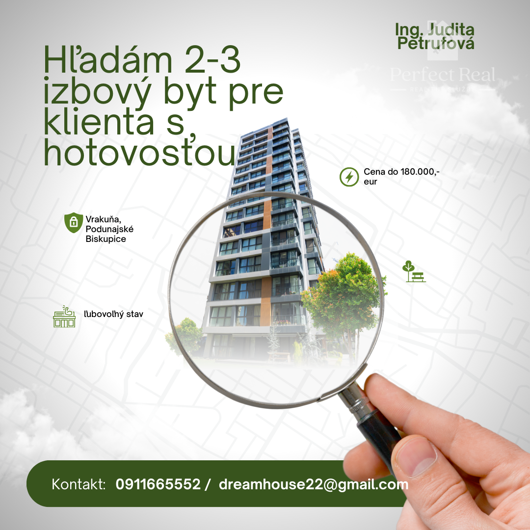 Pre klientov s hotovosťou hľadáme byt v Bratislave (Vrakuňa, Podunajské Biskupice).