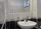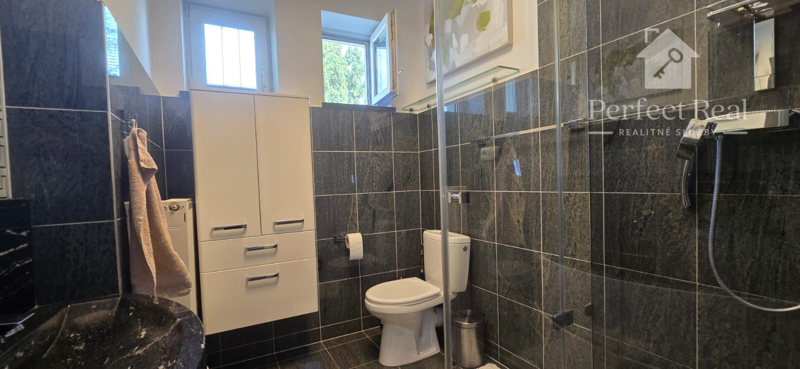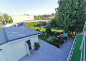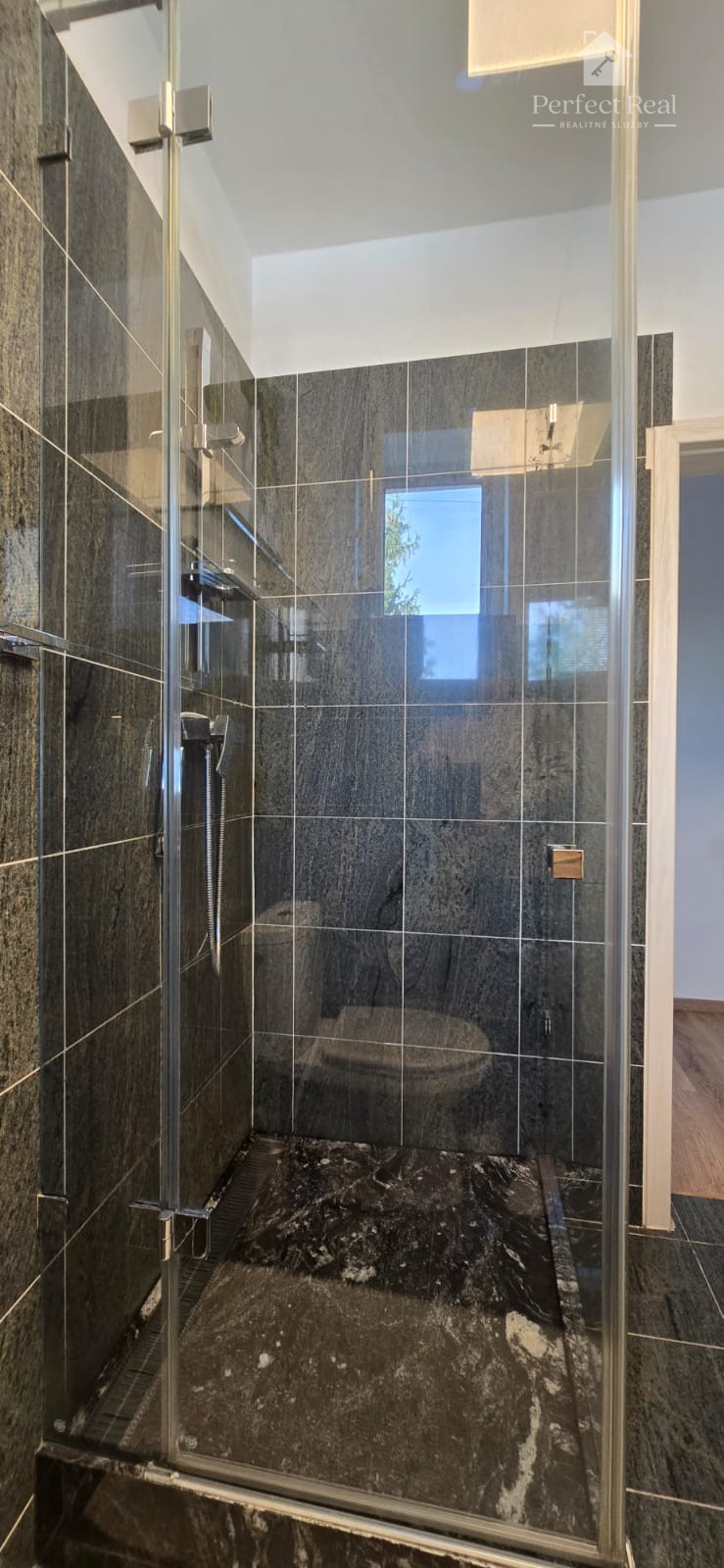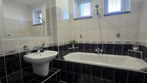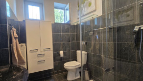 Na poschodí sa nachádzajú ďalšie dve priestranné izby a hala s obrovskou vstavanou skriňou, pracovným kútikom a pohodlným lehátkom na sladké ničnerobenie.. Je tu aj ďalšia kúpeľňa, tentokrát s vaňou. Z horného podlažia sa dostanete na rozľahlú terasu s úchvatným výhľadom na záhradu.