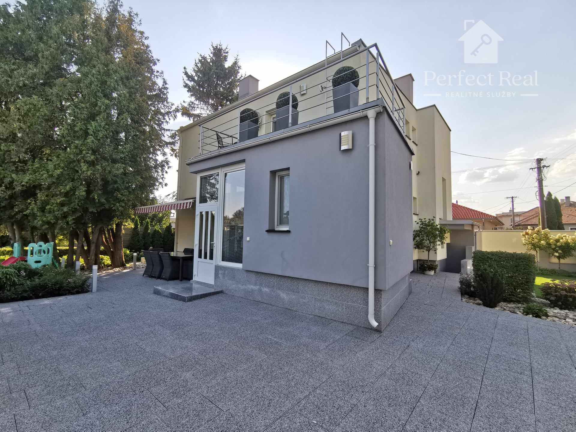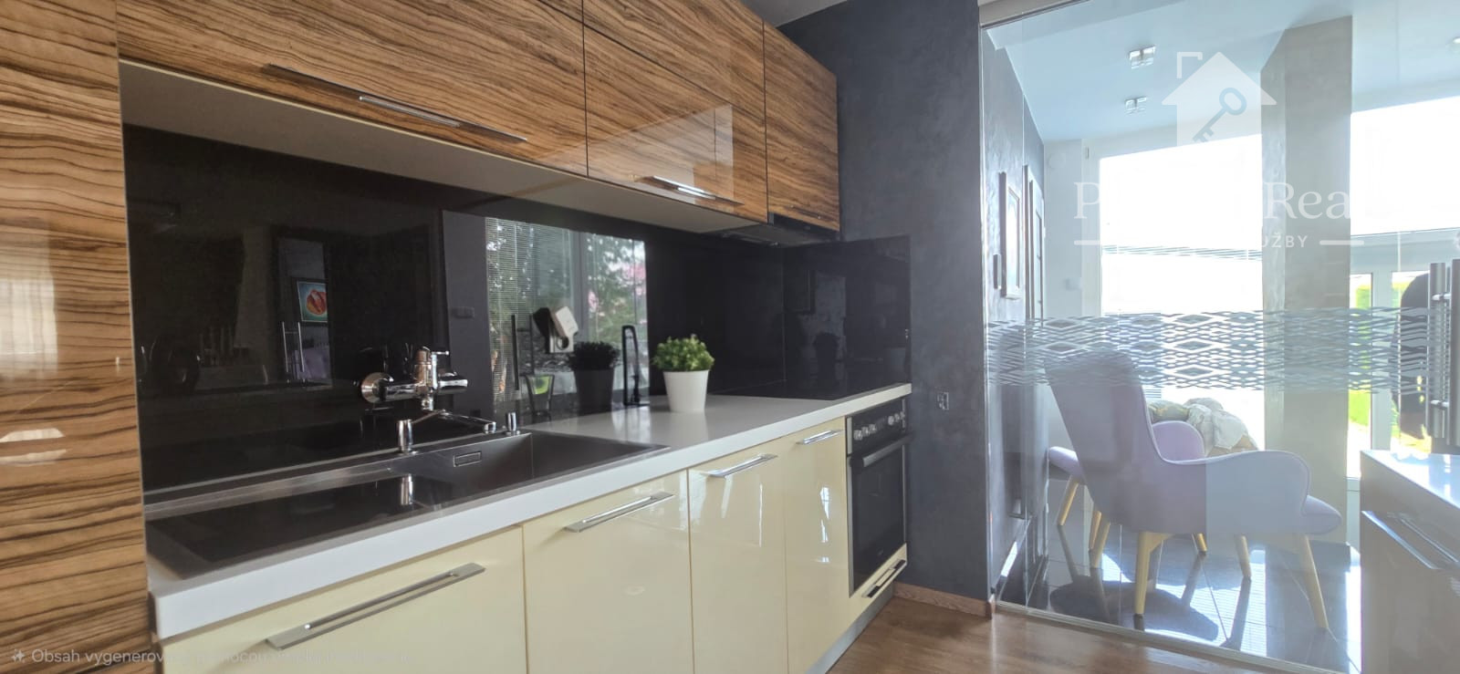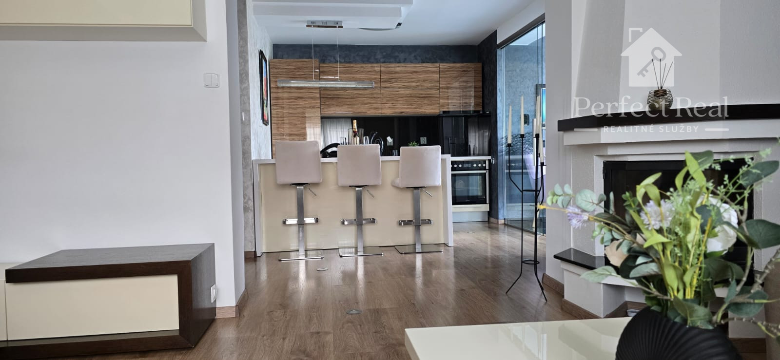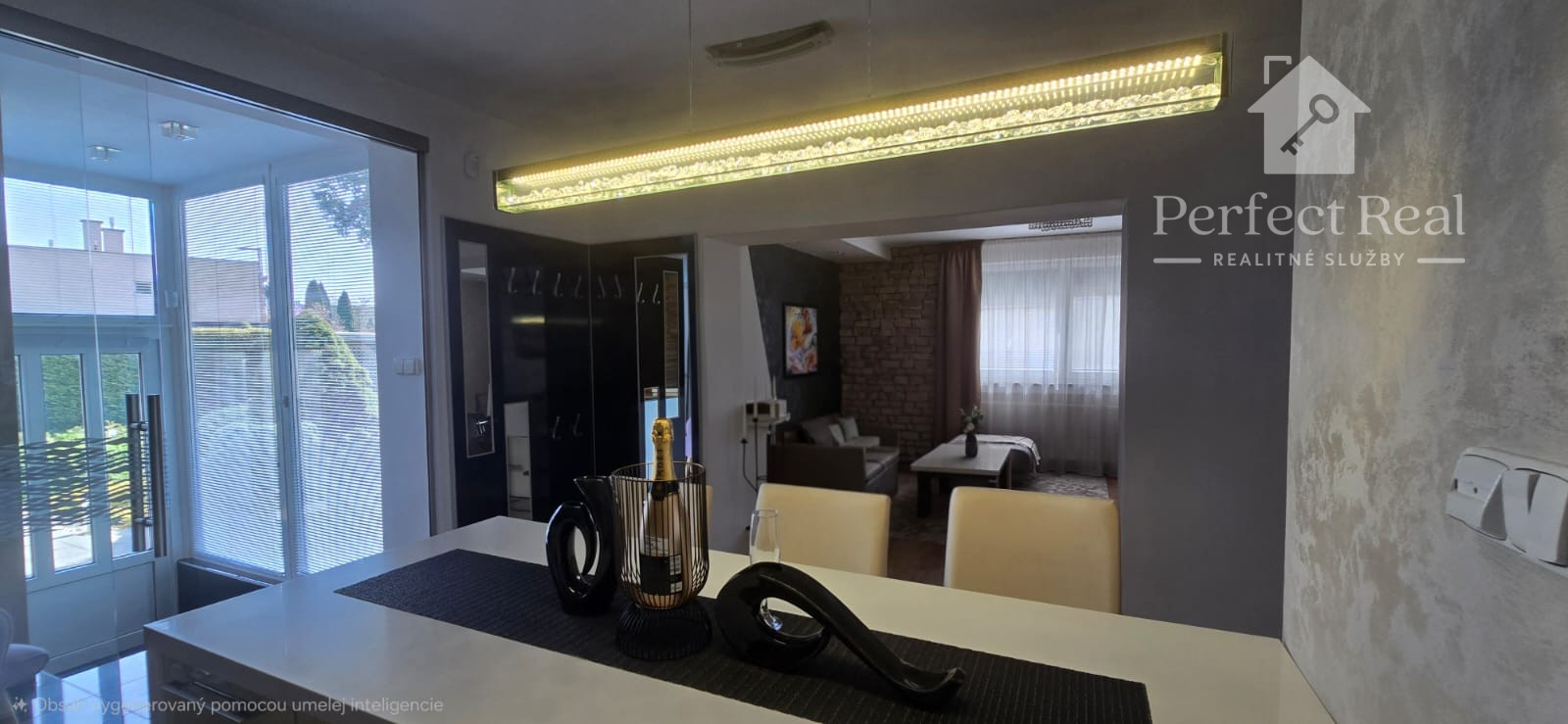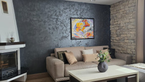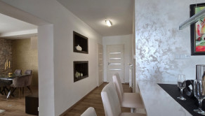 Tento dom s úžitkovou plochou približne 150 m2, so zastavanou plochou 100 m2, je postavený s láskou k detailom a kvalite. Jeho architektúra je obohatená o žulové a kamenné obklady, drevené podlahy, krásne svietidlá a elegantné interiérové riešenia. Nechýba v ňom ani moderné kompletné vybavenie a spotrebiče, ktoré sú súčasťou predaja, ako vidieť na fotografiách.
