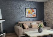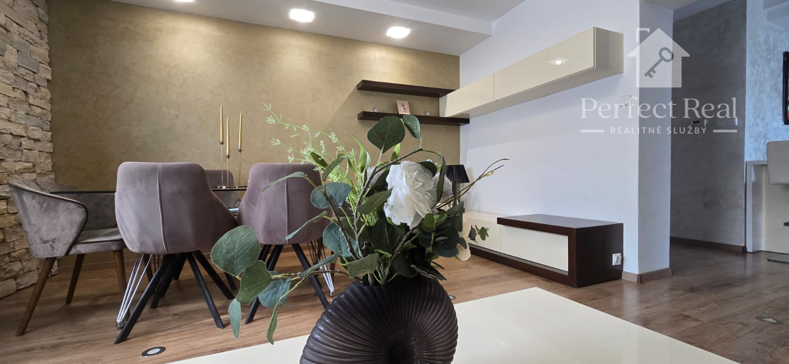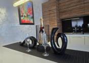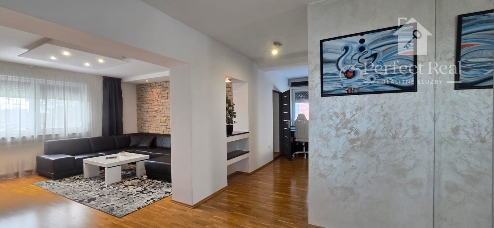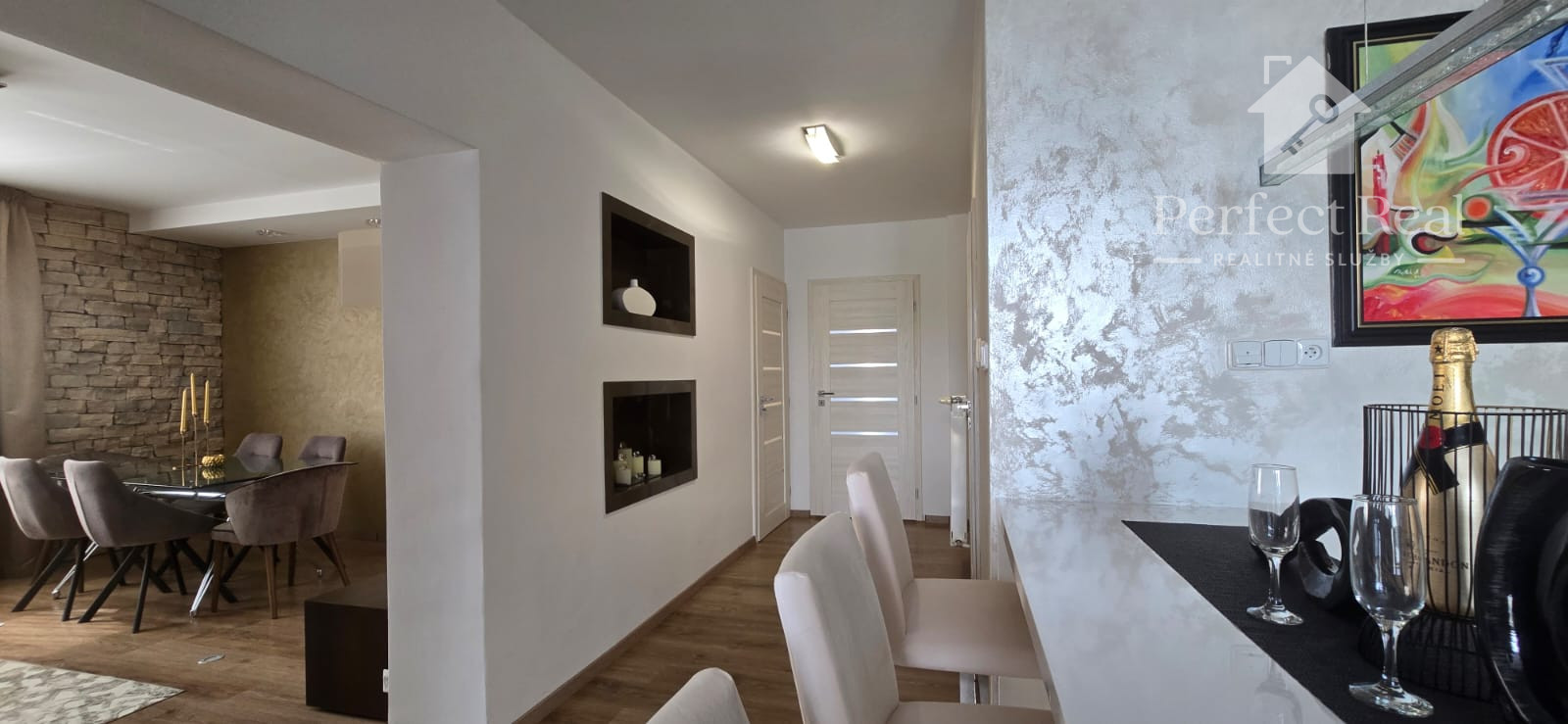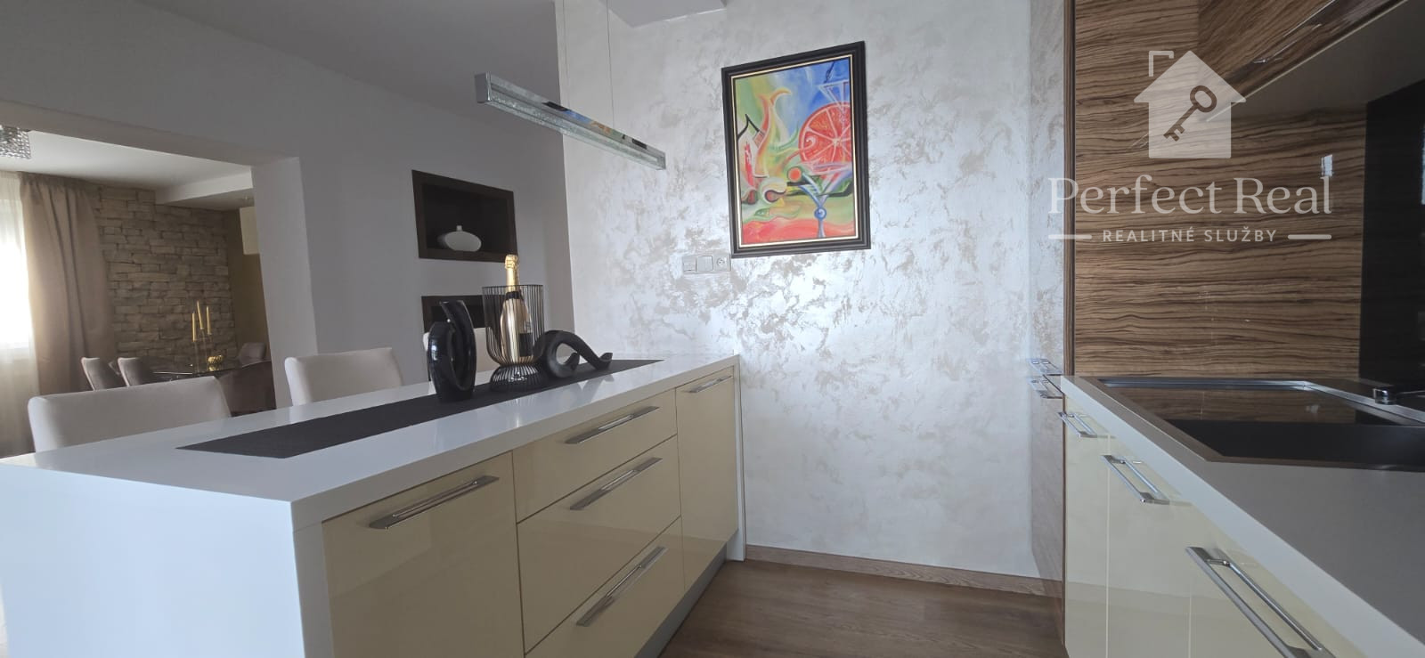 Tento dom s úžitkovou plochou približne 150 m2, so zastavanou plochou 100 m2, je postavený s láskou k detailom a kvalite. Jeho architektúra je obohatená o žulové a kamenné obklady, drevené podlahy, krásne svietidlá a elegantné interiérové riešenia. Nechýba v ňom ani moderné kompletné vybavenie a spotrebiče, ktoré sú súčasťou predaja, ako vidieť na fotografiách.