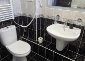 V dome na prízemí nájdete veľkú obývaciu izbu s krbom, útulnú spálňu a kúpeľňu so spchovým kútom. Otvorená kuchyňa je moderná a plne vybavená. Praktické úložné priestory v podobe vstavaných skríň, komôr a veľkej pivnice sú samozrejmosťou.