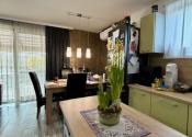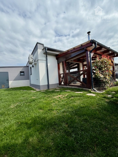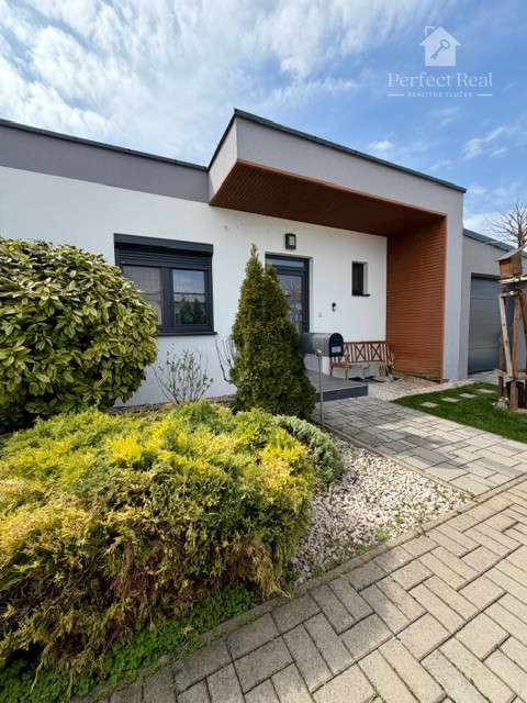 Rodinný dom je súčasťou dvojdomu so samostatnými vstupmi. Dom má moderný dizajn s rovnou strechou, je veľmi pekný, má krytú terasu.